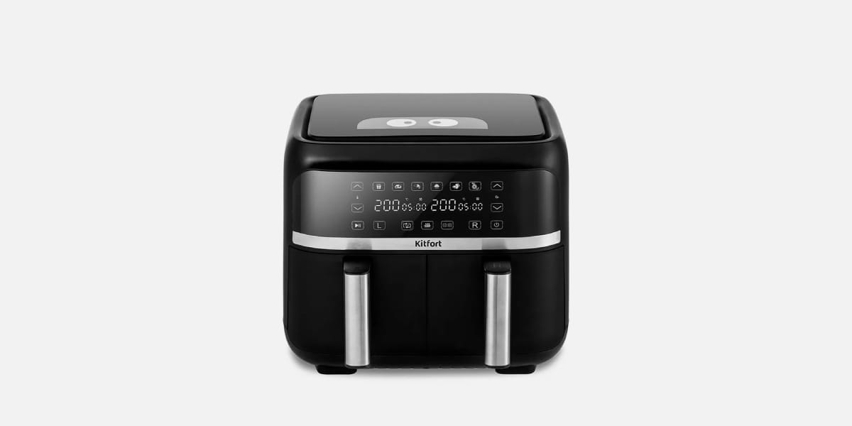 В рейтинг попали аэрогрили с двумя чашами разных ценовых категорий и объёмов, которые получили положительные отзывы на Wildberries, Ozon, Яндекс.Маркете и тематических форумах. Мы изучили реальный опыт покупателей, обращая внимание на надёжность конструкции, качество антипригарного покрытия, удобство управления и равномерность приготовления в обеих чашах.