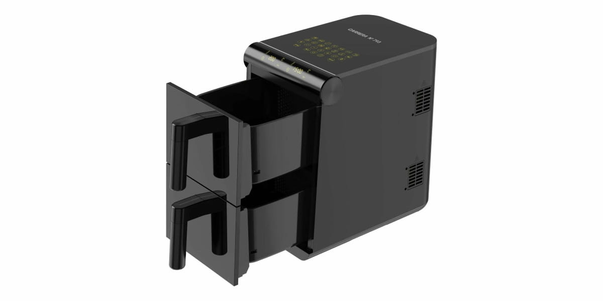 CRG793 имеет две чаши объёмом по 5,5 л каждая и достаточной большой мощностью 2800 Вт. Температура регулируется от 80°C до 200°C с шагом в 10 градусов для точной настройки. Встроено 13 программ. Таймер программируется до 60 минут для большинства режимов с возможностью досрочной остановки. Используется система верхнего нагрева с технологией Rapid Air для быстрой циркуляции воздуха.